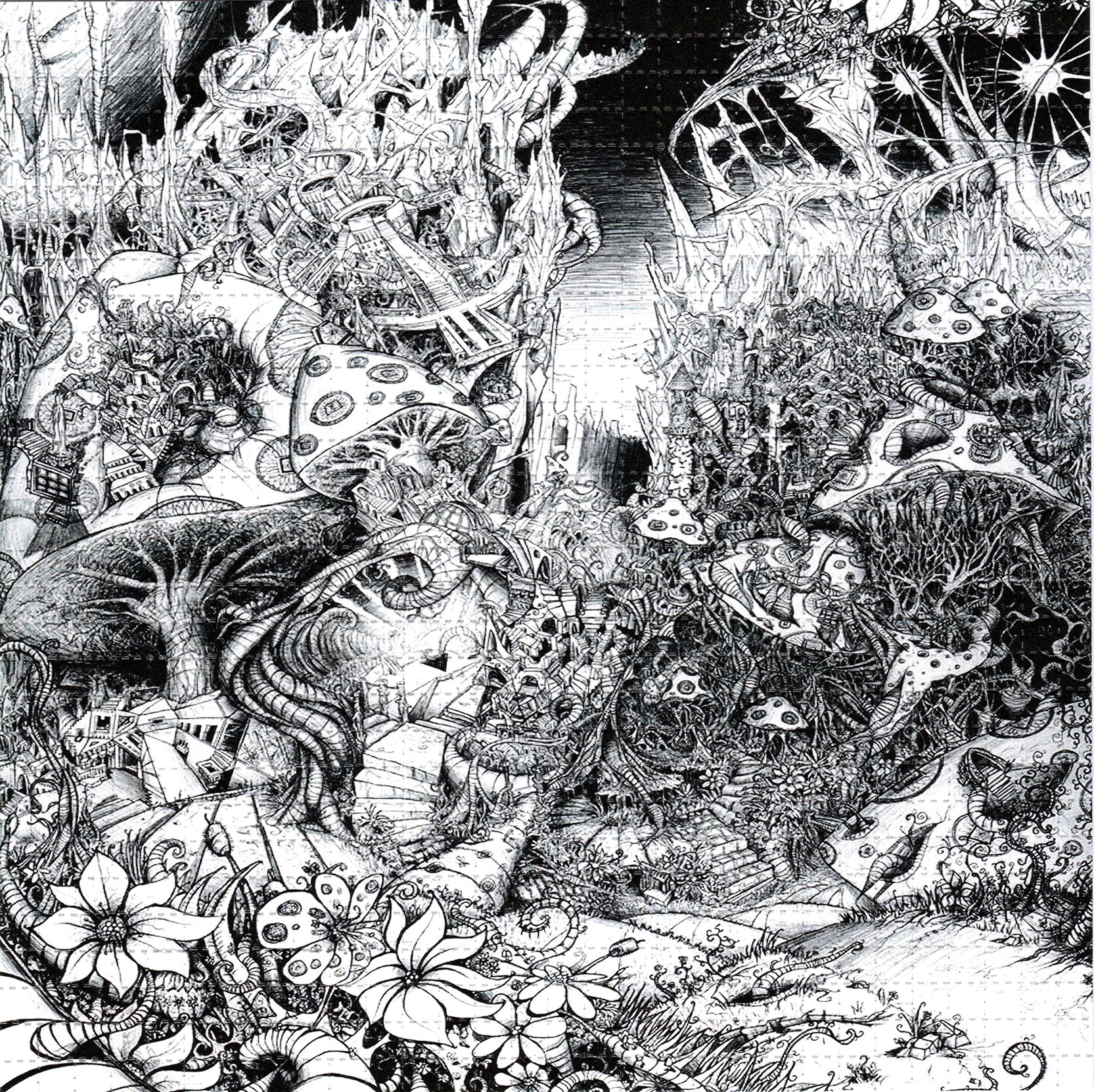 B/W Mycillium World LSD blotter art print